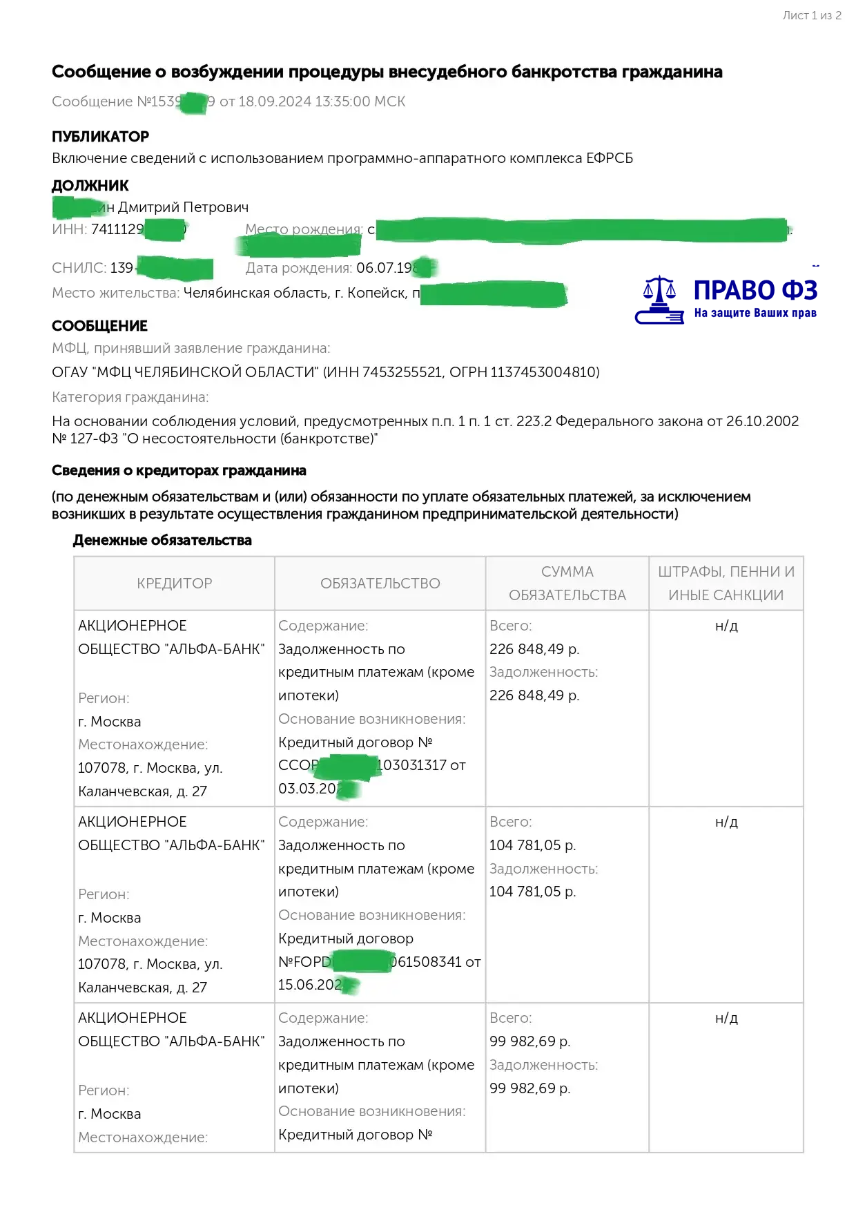Спишем долги по Кредитам, МФО, ЖКХ, Налогам. Очистим кредитную историю.